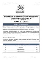 Gwybodaeth am werthuso tendr y Prosiect Ymholiadau Proffesiynol Cenedlaethol.