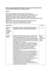 The Minister met the developers to discuss building safety issues relating to high and medium-rise buildings and their remediation. This included developers’ work to make good identified defects and their engagement with residents. The Minister raised the costs of remediation; developers’ contribution and that residents and leaseholders should not have to shoulder this burden. A copy of these minutes is attached at annexes B to D.
