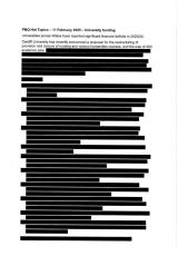 Copïau o bapurau briffio ar y mater o’r cyhoeddiad diweddar gan Brifysgol Caerdydd am doriadau.