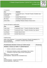 Yn cynnwys penderfyniadau allweddol a chamau gweithredu.