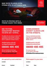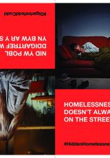 Deunyddiau hyrwyddo a ddefnyddir yn yr ymgyrch Digartrefedd Cudd.