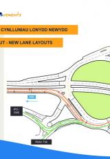 Map yn dangos cynlluniau lonydd cylchfan newydd.