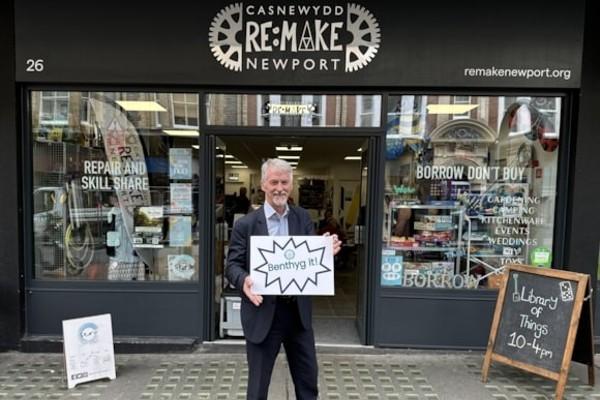 Yn ddiweddar, ymwelodd Ysgrifennydd y Cabinet dros Newid Hinsawdd a Materion Gwledig, Huw Irranca-Davies, â RE:MAKE yng Nghasnewydd (cartref un o Lyfrgelloedd Pethau Benthyg Cymru), a chael profiad uniongyrchol o ba mor hawdd yw cofrestru a benthyg o gatalog helaeth o eitemau defnyddiol megis golchwyr pwysau, glanhawyr carped ac offer gwersylla.