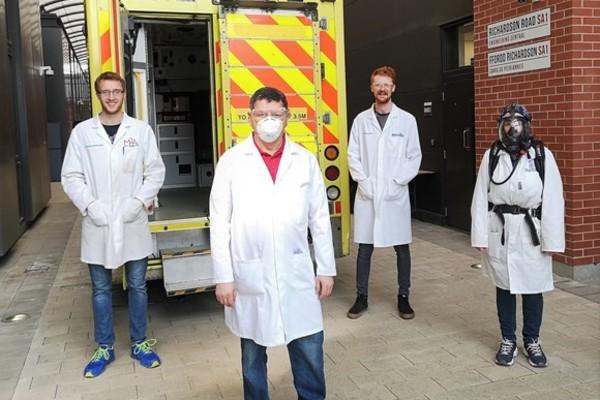 Mae myfyrwyr y brifysgol yn helpu i gwtogi’r amser sydd ei angen i lanhau ambiwlans o 45 munud i lai na 20 munud.
