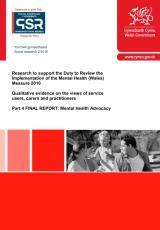 Dyma'r datganiad diweddaraf yn y gyfres: Ymchwil i gefnogi'r Ddyletswydd i Adolygu Mesur Iechyd Meddwl (Cymru) 2010