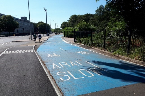 Llun o lôn deuol ar gyfer teithio llesol a rhoddfa