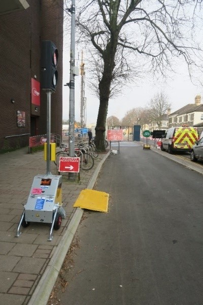 20.17 Wrth benderfynu ar y trefniadau mwyaf priodol, dylid ystyried amseroedd clirio i feicwyr, yn enwedig ar lethrau serth. Pan gaiff darlun rheoli traffig ei gyflwyno â goleuadau traffig symudol, yna dylid asesu'r darlun a'r lleoliad a dylid rhoi amseroedd y goleuadau i'r awdurdod lleol. Fel arall, dylai'r hyrwyddwr gwaith eu gweithredu fel y cytunwyd â'r awdurdod lleol neu'n unol ag argymhellion yr Adran Drafnidiaeth yn llyfryn ‘An Introduction to the use of Portable Vehicular Signals 2016’, a elwir hefyd yn 'Llyfr Pinc’.