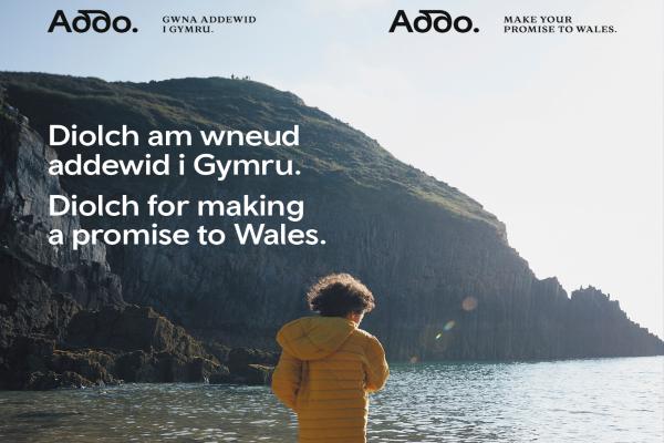 Mae Addo yn ymwneud â phobl yn gweithio gyda'i gilydd, gan wneud adduned ar y cyd i ofalu am ei gilydd a'n gwlad. Mae gofyn i bobl wneud adduned yn ffordd ddiddorol i bobl fuddsoddi'n emosiynol yng Nghymru a dangos eu bod yn cymryd pethau o ddifri hefyd. Drwy ymuno â ni, a gwneud adduned, byddwn ni i gyd yn chwarae ein rhan — drwy ofalu amdanon ni ein hunain ac eraill. Gellir llofnodi'r adduned rhithwir ar Busnes Cymru.