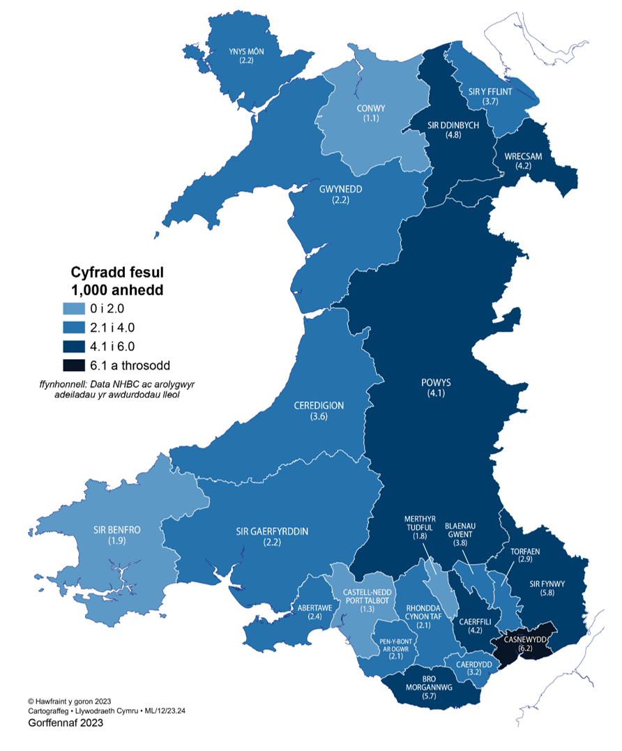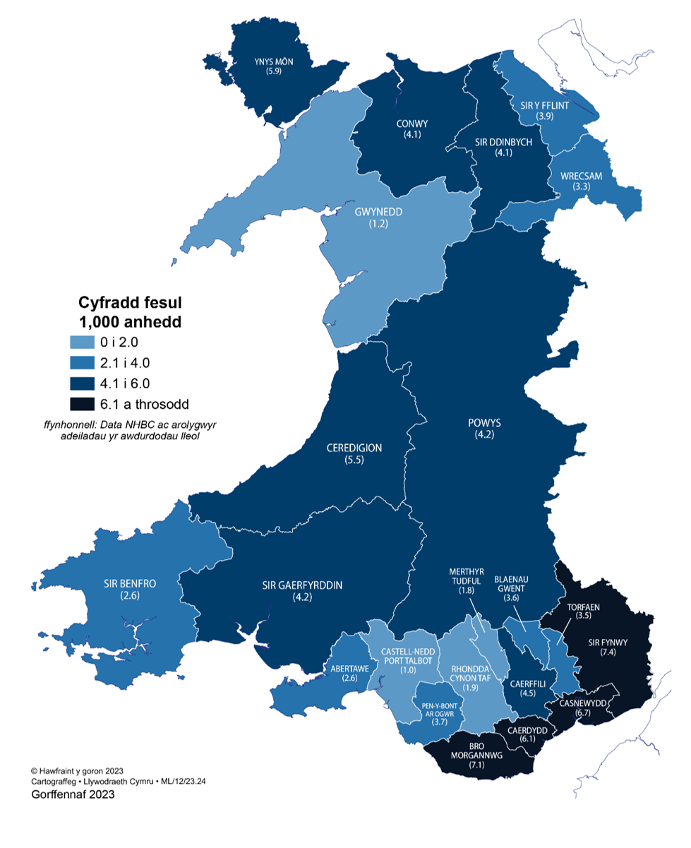 [Nodyn 1] Adeg cyhoeddi hwn, dim ond data Cymru, yr Alban a Gogledd Iwerddon oedd ar gael ar gyfer 2022-23.