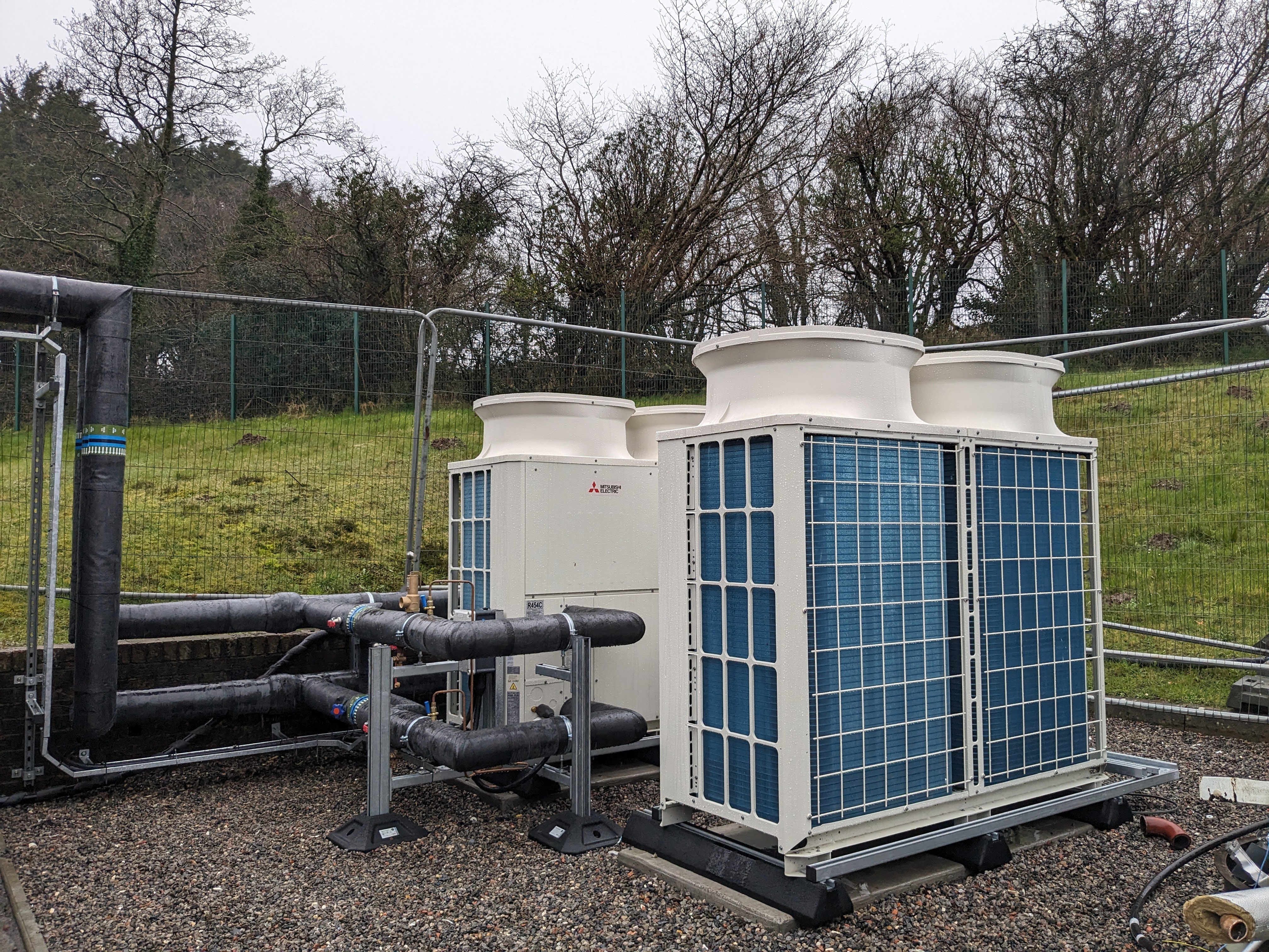 - Gosod systemau rheoli adeiladau newydd i reoli’r pympiau gwres