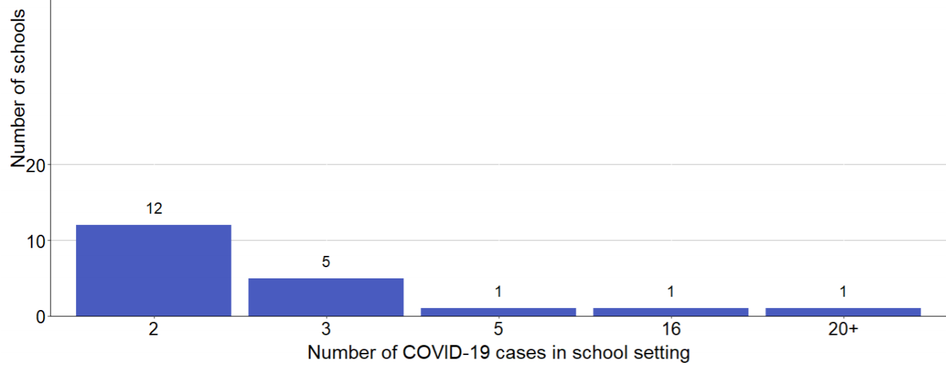 Schools with more than one COVID-19 case identified within the last 21 days, excluding 43 schools with 1 COVID-19 case