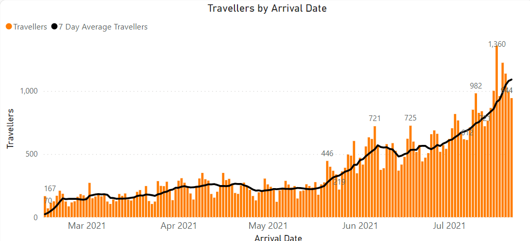 7,621 total travellers this week (5,893 last week):