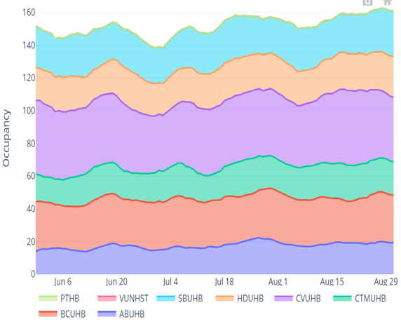 Graph showing hospital bed occupancy for suspected and confirmed COVID positive patients