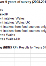 Pennod 5: dadansoddi tueddiadau amser ar gyfer bwydydd a maetholion dethol , Saesneg yn unig, math o ffeil: XLSX, maint ffeil: 18 MB