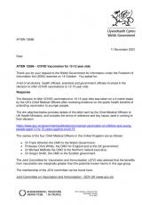 Manylion y rhai a benderfynodd sicrhau bod y brechlyn COVID-19 ar gael i bobl ifanc 12 i 15 oed.