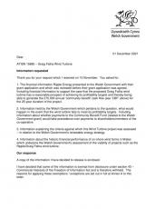 Gwybodaeth mewn perthynas â thyrbin gwynt Graig Fatha.