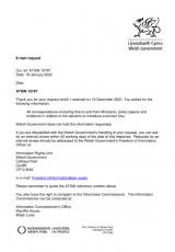 Copïau o’r holl ohebiaeth yn ymwneud â’r penderfyniad i gyflwyno ardoll dwristiaeth.