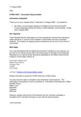 Copïau o ohebiaeth â Chyngor Caerdydd ynghylch y cais i gynnal Cystadleuaeth Cân Eurovision.