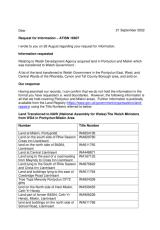 Gwybodaeth yn ymwneud â thir caffael Awdurdod Datblygu Cymru ym Mhontyclun a Meisgyn a drosglwyddwyd i Lywodraeth Cymru.