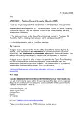 Manylion cyfarfodydd panel arbenigol yn trafod dyfodol addysg cydberthynas a rhywioldeb.