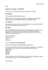 Gwybodaeth ynglŷn â chymorthdaliadau y mae Maes Awyr Caerdydd yn eu darparu i Ryanair er mwyn lansio teithiau rhwng meysydd awyr Caerdydd a Belfast.