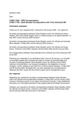 Copïau o ohebiaeth ag Undeb Rygbi Cymru a chopïau o ohebiaeth Dawn Bowden â Tonia Antoniazzi AS.