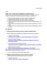 Gwybodaeth am bolisïau ym meysydd iechyd meddwl, anableddau a LHDTC.