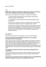 Gwybodaeth yn ymwneud â gwirio'r Datganiad Amgylcheddol (ES) gan yr Arolygydd ar gyfer apeliadau Biomas y Barri.