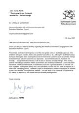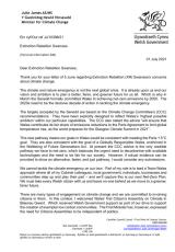 Copïau o ohebiaeth rhwng y Gweinidog dros Newid Hinsawdd, ac Extinction Rebellion.