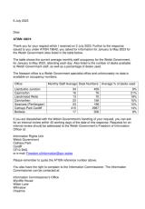Cyfraddau defnydd misol cyfartalog staff o safleoedd Llywodraeth Cymru.