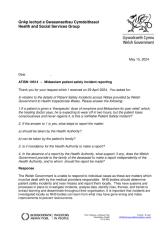 Yr wybodaeth am ddigwyddiadau diogelwch cleifion ar draws Cymru sy’n cael ei rhoi gan Lywodraeth Cymru i Arolygiaeth Gofal Iechyd Cymru.