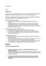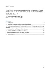 Gwybodaeth am gyfraddau presenoldeb mewn swyddfeydd, polisïau gweithio o bell, a threfniadau gweithio hybrid o fewn Llywodraeth Cymru.