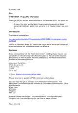 Copi o’r llythyr a anfonwyd at aelwydydd yng Nghymru a rhestr o bob cod post a gafodd bamffled.