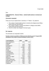 Gwybodaeth am weithwyr iechyd meddwl mewn ysgolion a cholegau.