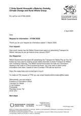 Cost hysbysebu cynllun talu wrth deithio newydd Trafnidiaeth Cymru.