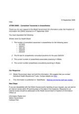 Manylion ynghylch nifer y swyddi ymgynghorol gwag mewn Anestheteg.