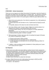 Gwybodaeth am amseroedd aros ar gyfer Asesiadau Awtistiaeth.