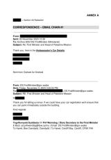 Copïau o ohebiaeth gyda Chenhadaeth Palesteina.