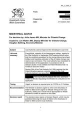 Copi o’r cyngor i Weinidogion yn ymwneud â phwll glo Aberpergwm.