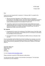 Copïau o unrhyw geisiadau am waith i’w cynnal ar Gomin Coety Walia.