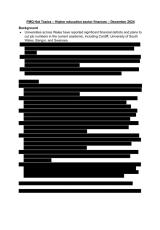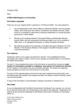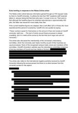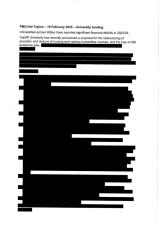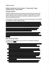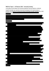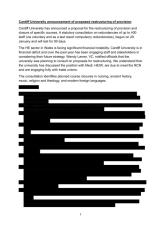 Copïau o bapurau briffio ar y mater o’r cyhoeddiad diweddar gan Brifysgol Caerdydd am doriadau.