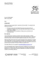 Gwybodaeth am y gost i Lywodraeth Cymru mewn perthynas ag Arglwydd Raglawiaid.