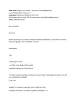 Copïau o ohebiaeth mewn perthynas â mater yn ymwneud â GWR a’r Gymraeg yn ystod hydref 2017.
