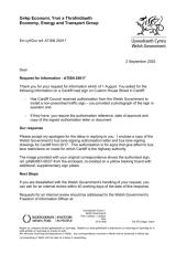 Copi o lythyr gan Lywodraeth Cymru yn awdurdodi arwyddion ar gyfer lonydd bysiau a lluniadau o’r arwyddion ar gyfer lonydd bysiau yng Nghaerdydd o 2017.