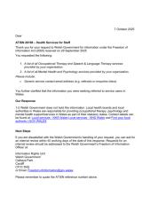 Cyfrifoldeb dros ddarparu therapi galwedigaethol, gwasanaethau/cymorth iechyd meddwl a seicolegol yng Nghymru fel rhan o’u dyletswyddau statudol.