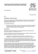 Copïau o gynigion sy’n ymwneud â chofnodi rhyw a/neu rhywedd mewn cofnodion iechyd.