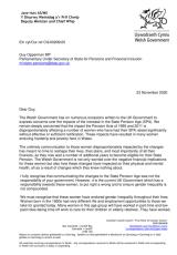 Copïau o ohebiaeth gyda Llywodraeth y DU ynglŷn â newidiadau i oedran pensiwn menywod a anwyd yn y 1950au.