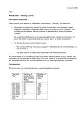 Gwybodaeth am nifer y cynyrchiadau ffilm neu deledu y mae Llywodraeth Cymru wedi’u helpu