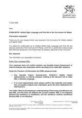 Gwybodaeth am Iaith Arwyddion Prydain a Chymorth Cyntaf yn y Cwricwlwm i Gymru.