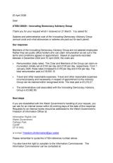 Gwybodaeth am gyflogau a chostau gweinyddu’r Grŵp Cynghori ar Arloesi Democratiaeth.